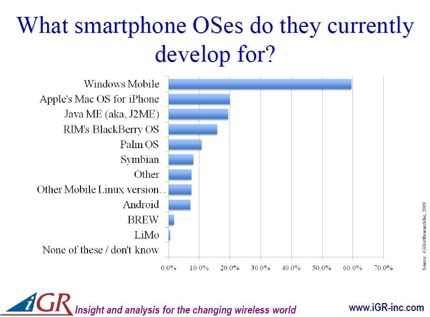 A while ago I attended Fierce’s Mobile Operating System Debate webinar and could not help but notice the dismal future of BREW as a platform for mobile application development. As illustrated on slide 5 (see presentation from webinar referenced above), iGR found that ZERO percent of existing mobile developers surveyed planned to develop for BREW in the future. We could debate the specifics of the data in the survey, but it is clear that BREW is losing developer mind share rapidly (while Apple, Google and RIM are all gaining share, as confirmed by iGR’s survey).